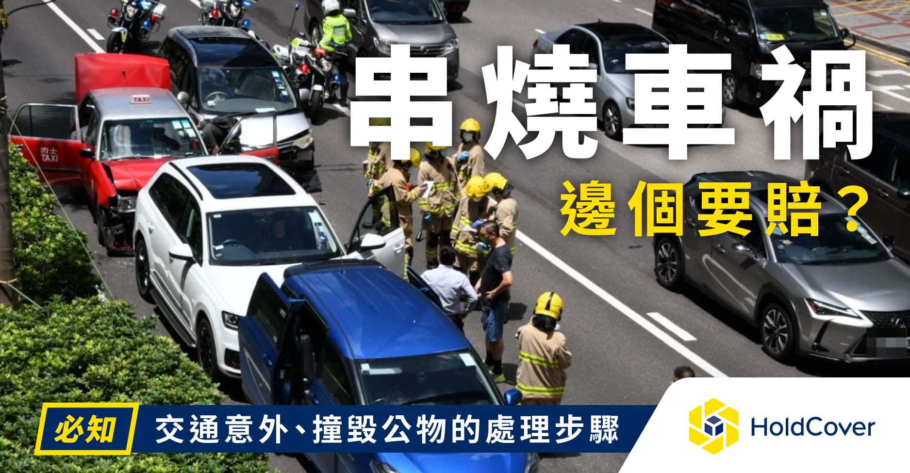 車禍沒有人想發生,但馬路如虎口,何時發生意外沒有人能預料到。兩車相撞必然是先違反交通規則的一方承擔責任,但如果發生多車連環相撞,責任又屬何方?今日,HoldCover 將為你剖釋串燒車禍、追撞和推撞的賠償方式,亦會詳述撞毀公物和車禍的處理流程。1. 串燒車禍/ 多車連環相撞的賠償責任屬哪一方?一般兩車相撞的交通事故,在後方的車輛大多數會因沒有保持安全的行車距離而須負責。但是,多車連環相撞則較為複雜,需視乎實際情況和警方調查,並由法庭判決最終責任誰屬。其實多車連環相撞...